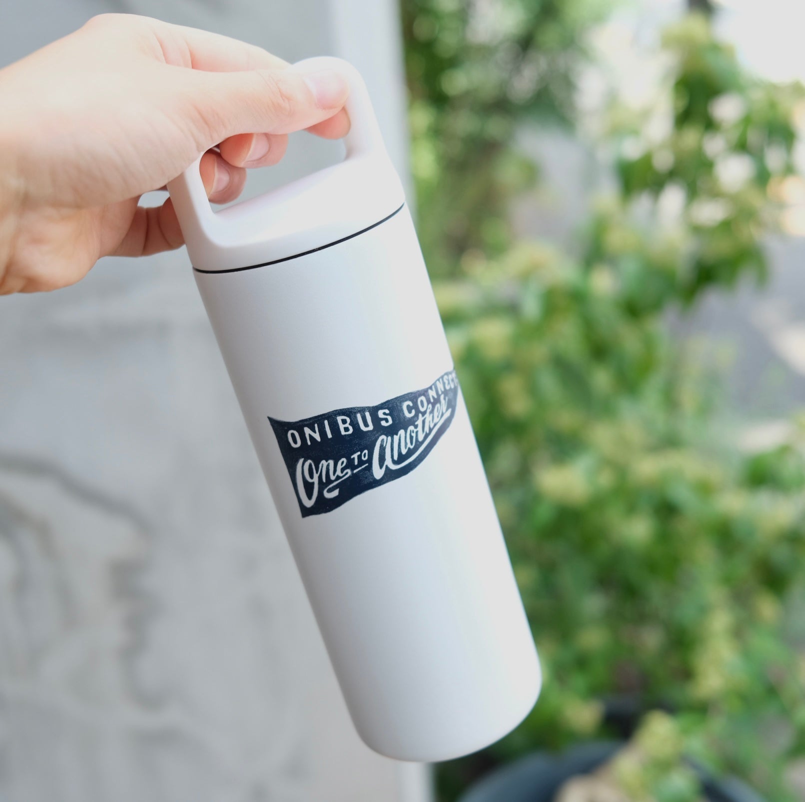 MiiRのタンブラーにオリジナルデザインを施したONIBUSグッズ。開口部分が広いので、洗いやすく大きめの氷もそのまま入ります。ハンドル付きの蓋で持ち運びにも便利。