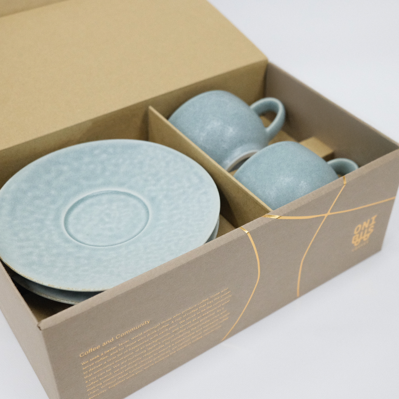 イイホシユミコ(yumiko iihoshi porcelain)とONIBUSで作ったこだわりのカップ&ソーサーをペアでご用意。毎日のコーヒー時間を特別にしてくれる組み合わせです。