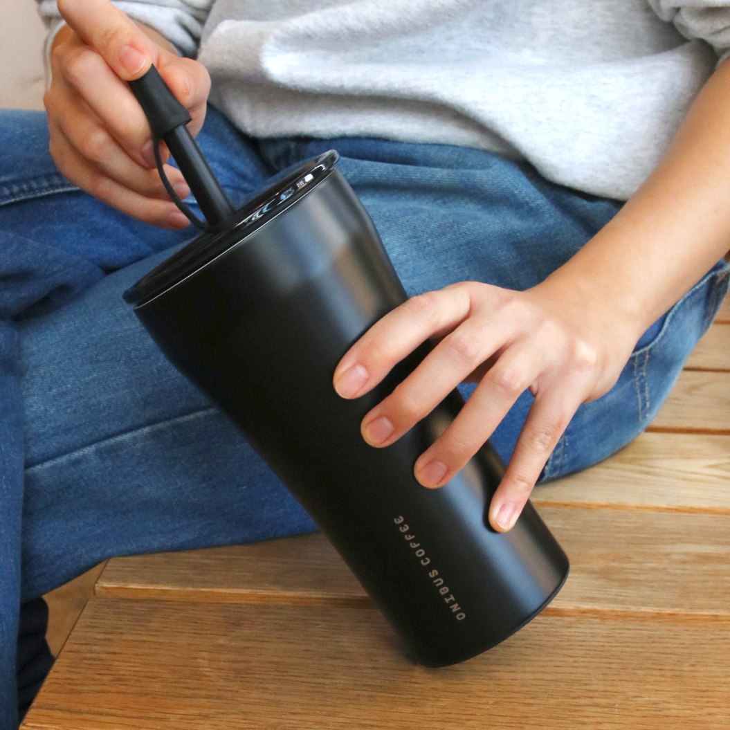「大きすぎないのにたっぷり入る」絶妙なバランスが人気のSTTOKE VサイズとONIBUSのコラボレ―ションが実現。STTOKEのロゴに加えて、ONIBUSのロゴも入ったオリジナルのタンブラーです。